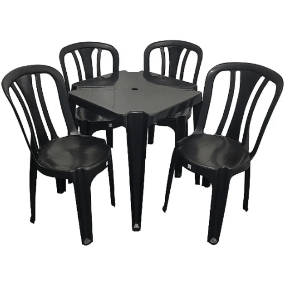 O Conjunto 1 Mesa + 4 Cadeiras Plásticas Bistrô Arcos une conforto, resistência e praticidade em um só produto. Ideal para quem busca funcionalidade sem abrir mão da durabilidade e do design moderno, este conjunto é perfeito para áreas de lazer, eventos e ambientes corporativos.